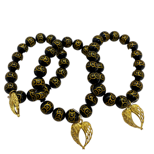 Black Obsidian Wealth & Protection Angel Wing Bracelet